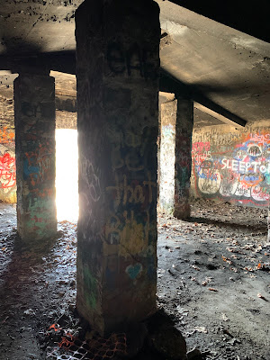 Sometimes in old movies, prisoners are shown breaking big rocks into little rocks. There is some truth to that, at least at the Rutland prison, which had a rock crushing plant that made concrete, gravel, and sand for road repairs. It sounds a little grim. The solitary confinement cells, the ruins of which are still standing, are also very small and grim. They're covered with colorful graffiti and don't have any bars on them now, but it was easy to imagine how dark and confining they would have been in the prison's heyday. We didn't visit the nearby cemetery of unmarked prisoner graves, but I think that sounds grim as well.